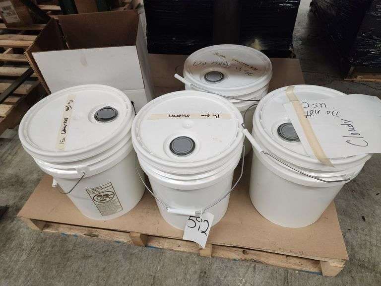 LOT 592 - Four 5 Gallon Buckets and 3-1 Gallon Bottles of Pro 5000, 2-Labeled Cloudy