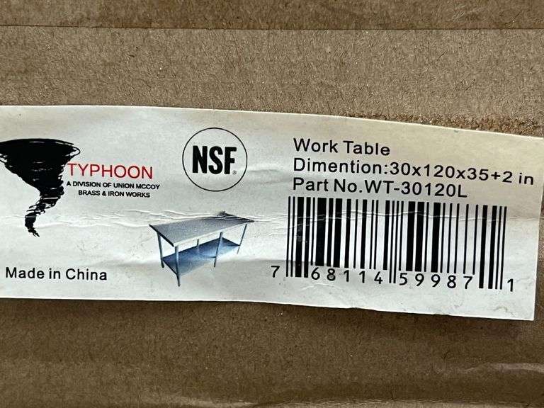 LOT 581 - Stainless Steel Work Table 30x120x35in 2in Backsplash with Under Shelf