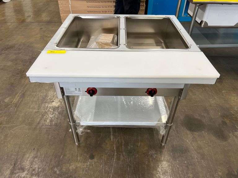 LOT 324 - Stainless steel two well LP gas steam table