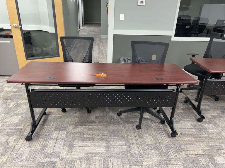 LOT 1101 - Rolling Wooden Folding Top Desk with 2 Rolling Office Chairs