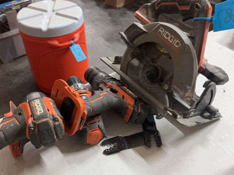 LOT 687 - Rigid Circular Saw, 2 Drills & Impact - NO BATTERY
