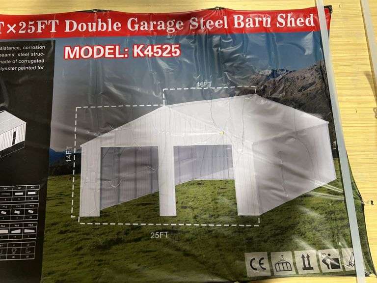 Include Box A+B Specifications:14gauge/16-gauge primary frames / 29-gauge metal roof Overall dimension:45FT(L)x25FT(W)x 14FT(H) Storage capacity: Approx.1125sq.ft