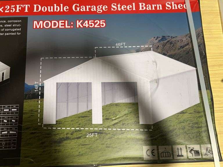 Include Box A+B Specifications:14gauge/16-gauge primary frames / 29-gauge metal roof Overall dimension:45FT(L)x25FT(W)x 14FT(H) Storage capacity: Approx.1125sq.ft