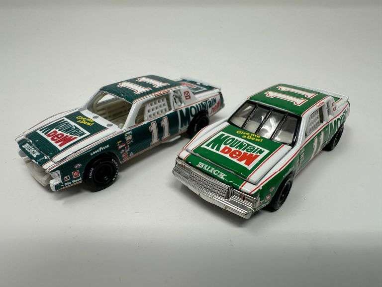 LOT 200 - (2) Hot Wheels PRE PRODUCTION SAMPLES 1:64 scale #11 Mountain Dew Darrell Waltrip (paint colors are different between cars, one has no front bumper or windshields)