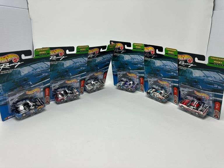 LOT 151 - (6) 2000 Hot Wheels Racing Treasure Hunt Series Racetrack Edition 1:64 (retail blister pack with trading card) Talladega Spring Race 27702, Michigan 27704, Watkins Glen 27706, Phoenix 27707, Talladega Fall Race 27708, Homestead-Miami 27709